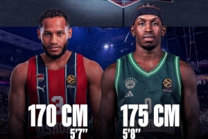 而比賽中發生了有趣的一幕,帕納辛納科斯身高1米75的小后衛TJ-紹茨對上了對面身高1米70的馬基斯-諾埃爾。