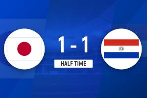 半場(chǎng)戰(zhàn)罷,日本隊(duì)暫1-1巴拉圭隊(duì)。