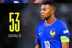 本場比賽姆巴佩連過數人抽射破門,國家隊近5場5球4助,生涯93場已有53球,距隊史射手王吉魯(57球)僅差4球。