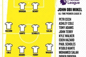 體育資訊10月11日訊 切爾西舊將米克爾近日評出了他心目中的英超歷史最佳11人陣容,效力藍軍期間,米克爾兩次捧起英超冠軍。