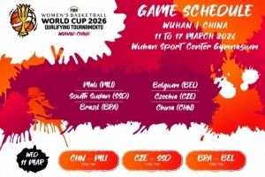 2026女籃世界杯預(yù)選賽武漢賽區(qū)日程出爐,比賽屆時將在武漢體育中心體育館進(jìn)行,每個比賽日三場比賽。中國隊(duì)日程安排如下(開球時間待定):