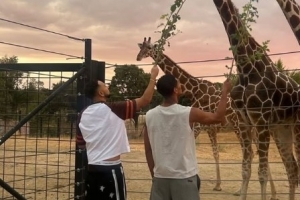 體育資訊10月13日訊 由于肩傷未愈,貝林厄姆沒有入選本次國(guó)際比賽日英格蘭隊(duì)大名單。在馬德里,他得以獲得難得的閑暇時(shí)光。在社交媒體上,他曬出了自己在動(dòng)物園內(nèi)和長(zhǎng)頸鹿互動(dòng)的照片。