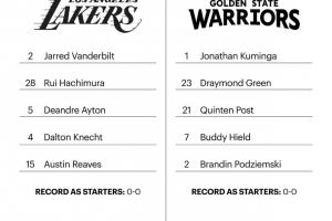 湖人:里夫斯、克內克特、八村塁、范德比爾特、艾頓;