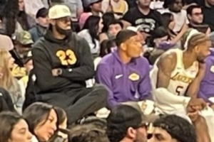 據(jù)洛杉磯記者M(jìn)ark Medina報(bào)道,本場(chǎng)比賽詹姆斯來(lái)到了現(xiàn)場(chǎng)觀戰(zhàn),他坐在隊(duì)友旁邊的一張高椅子上,大概是為了緩解坐骨神經(jīng)痛。