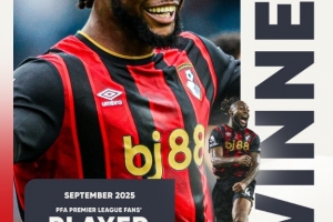 體育資訊10月13日訊 PFA(英格蘭職業球員工會,Professional Footballers' Association)官方宣布,伯恩茅斯邊鋒塞梅尼奧當選球迷票選英超9月最佳球員。
