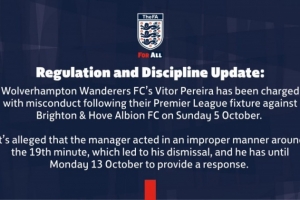 日前,英足總官方發布公告:“狼隊主帥佩雷拉在10月5日周日對陣布萊頓的英超聯賽后被指控行為不當。據稱,佩雷拉在第19分鐘左右行為不當,這導致他被罰下場,他需在10月13日周一前對此作出回應?!?/p>