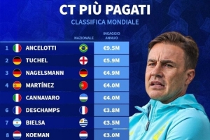 卡納瓦羅 (意大利) → 執教 烏茲別克斯坦:400萬歐元