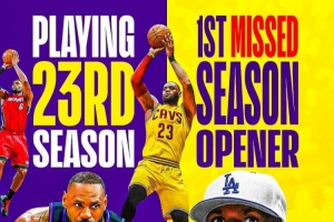 >詹姆斯生涯首次缺席常規賽揭幕戰此前他已經連續出戰22次!缺席生涯第23次揭幕戰!詹姆斯此前22次場均可攬25.2分8.1板5.7助" />