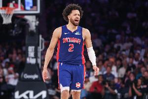 上半場比賽,活塞當家球星康寧漢姆繼續出色發揮,進攻端里突外投效率在線,還能串聯球隊。