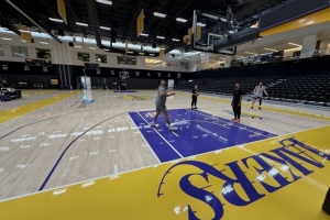 體育資訊10月10日訊 昨日,湖人記者Jovan Buha曬出湖人訓(xùn)練場(chǎng)的照片,并提到在三分線內(nèi)多了一條“兩分線”。